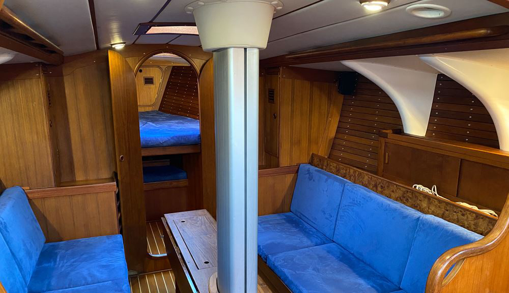 But the work never stops! Over the winter she has had the hull faired and Coppercoat applied as well as numerous tweaks internally and externally, including new Harken winches. All this together with her new IRC rating makes her a very competitive yacht.